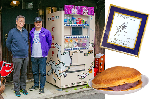 オーナーの似顔絵入り!ドリンクのみの自販機設置から5年後、置き換えで物販機導入 -