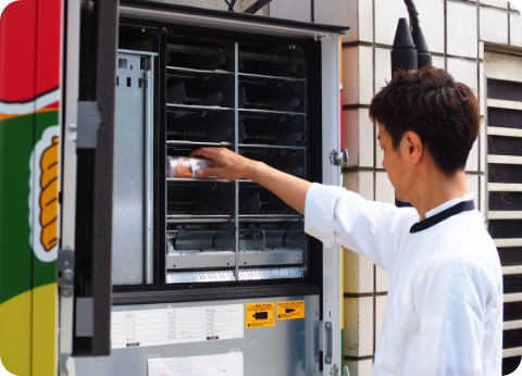 飲料だけでなく、タオルなどの衣類、アクセサリーなどの小物から、スイーツ、フルーツや野菜、ドレッシングなどの食料品まで、お店で販売されているオリジナルアイテムなども販売することが可能です。補充方法も簡単なのでご自身で自在にラインナップを変更することができます。