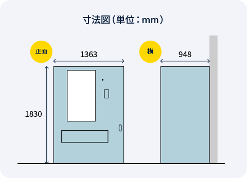 | 本体サイズ(幅×奥行き×高さ) | W 1363mm x D 948mm x H 1880mm |
