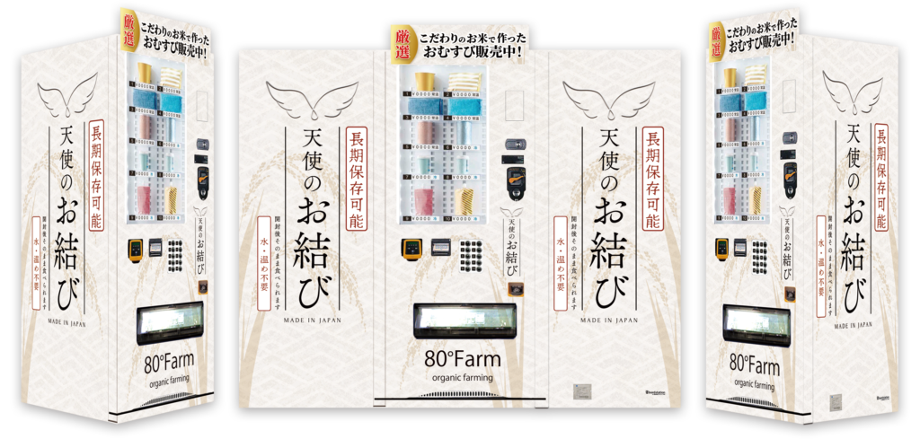 株式会社MJE(本社:大阪市中央区、代表取締役:大知 昌幸)が提供する、物販可能な看板型デザイン自販機「bord station(ボードステーション)」が、福岡県うきは市・朝倉市に「備蓄用おむすび自動販売機」として計3台設置されました。農業生産法人 株式会社80farm(本社:福岡県うきは市、代表取締役:佐々木 浩喜)が開発した5年間の長期保存可能な備蓄用おむすび「天使のお結び」を販売します。