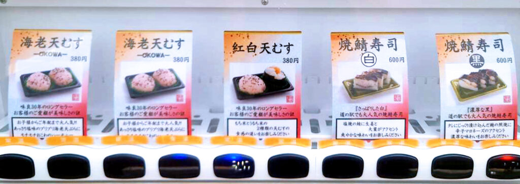 こだわりの焼鯖寿司と天むすを、自販機で手軽にどうぞ